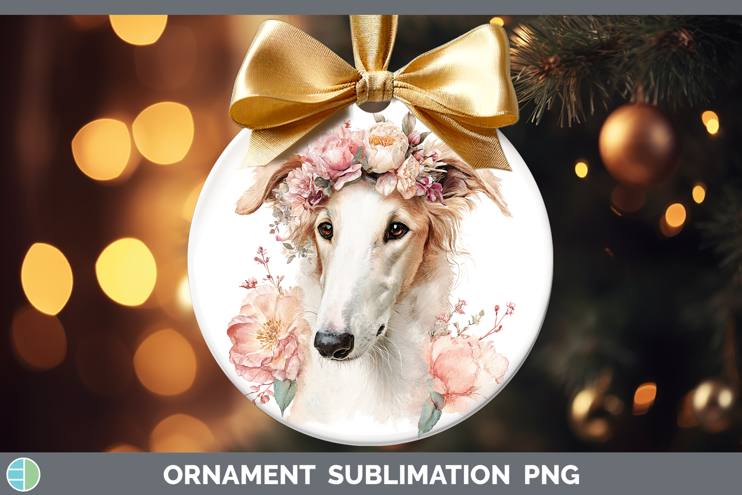 Borzoi Dogs 05 Floral Crown Ornament Sublimation Design