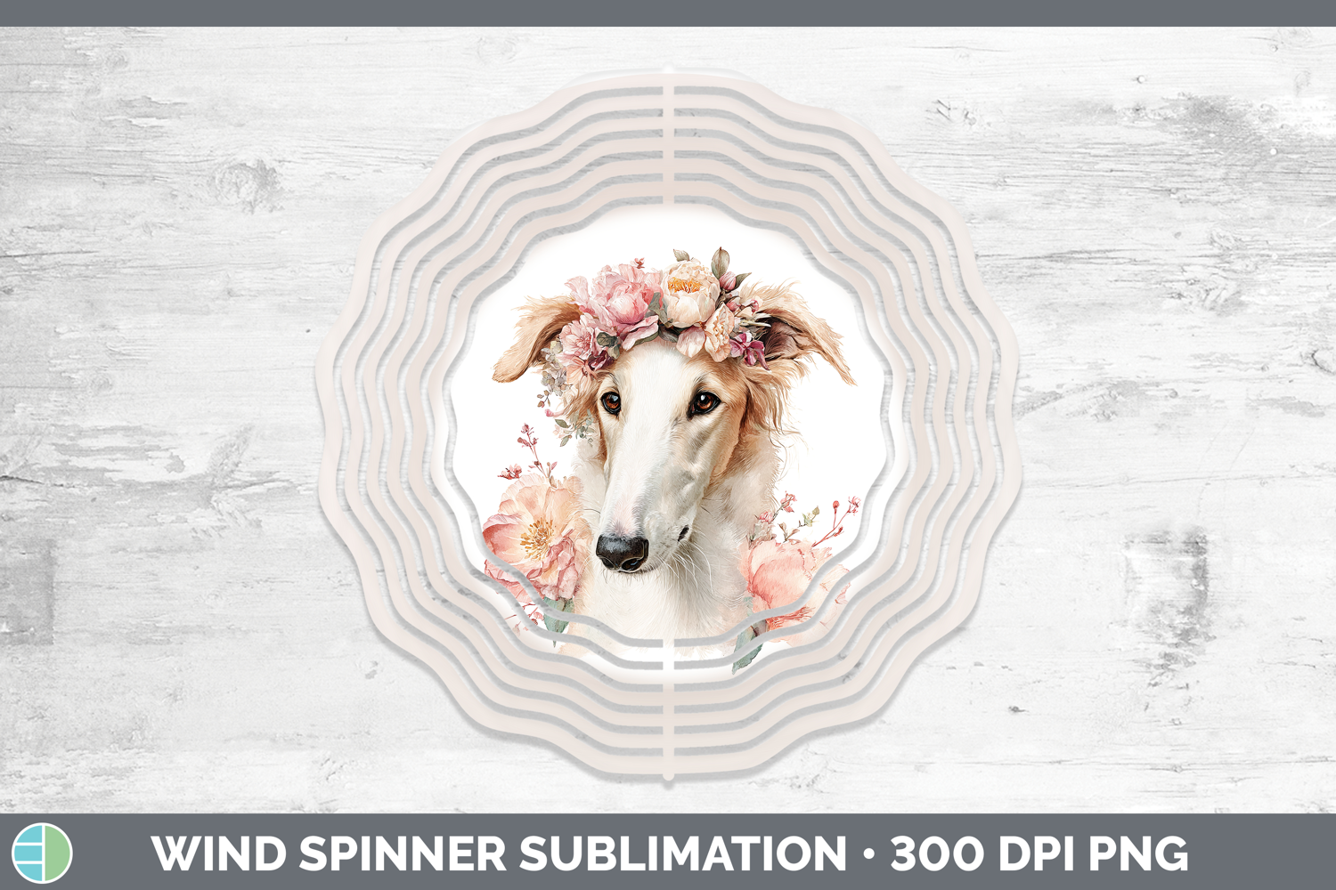 Borzoi Dogs 05 Floral Crown Wind Spinner Sublimation Design