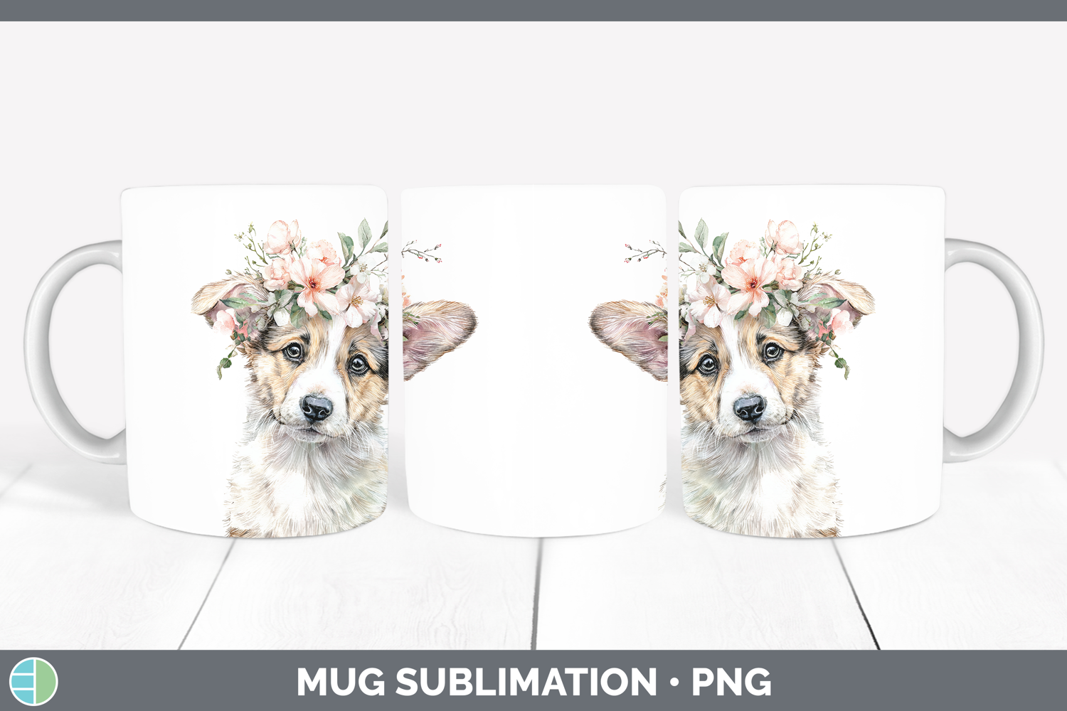 Cardigan Corgi Dogs 05 Floral Crown Mug Wrap Sublimation Des