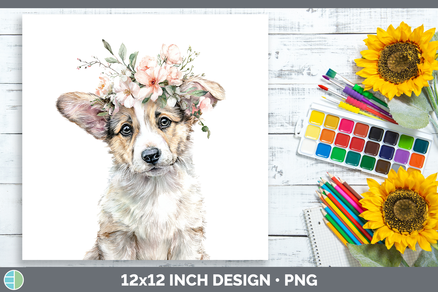 Cardigan Corgi Dogs 05 Floral Crown Paper Backgrounds Design