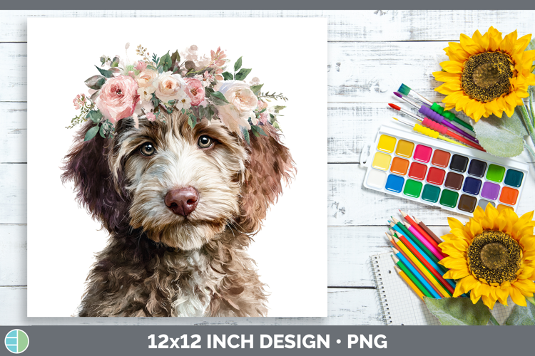 Labradoodle Dogs 05 Floral Crown Paper Backgrounds Design