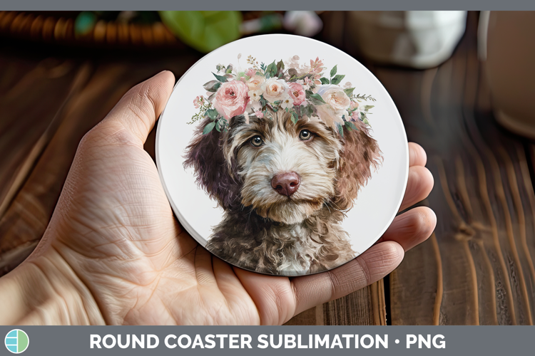 Similar Design Products to Labradoodle Dogs 05 Floral Crown Round Coaster Sublimation D
