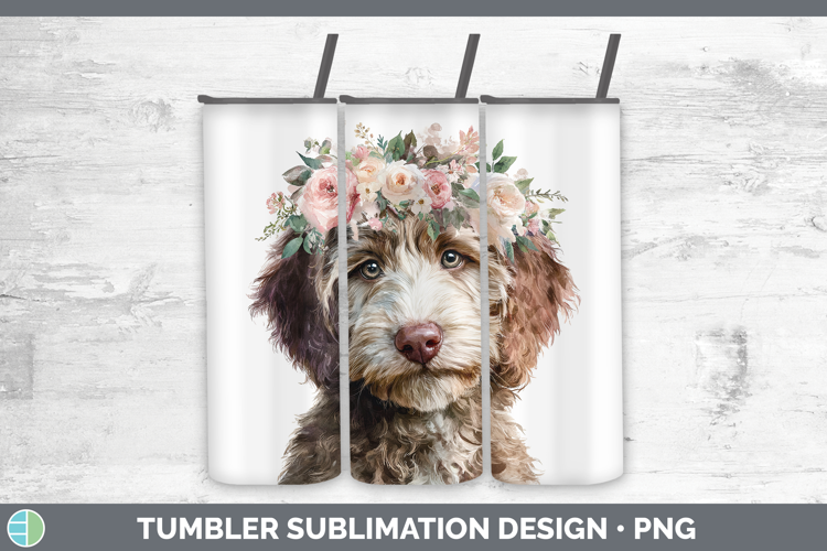 Labradoodle Dogs 05 Floral Crown Tumbler Sublimation Design
