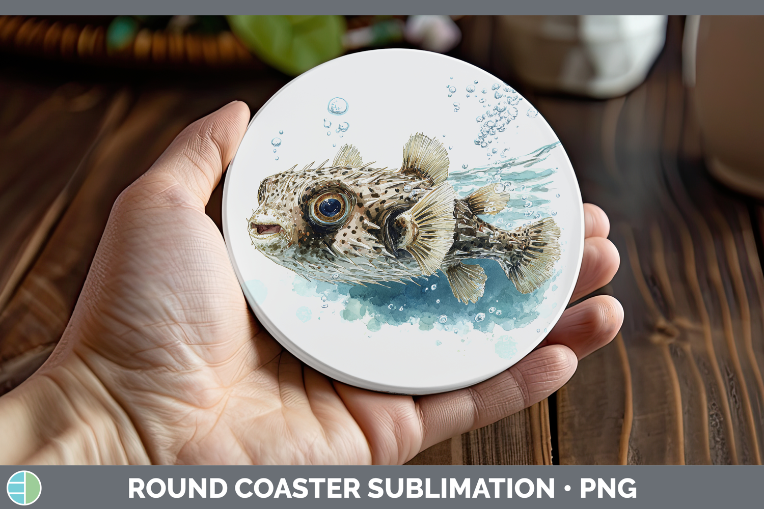 Porcupinefish Ocean Fish Sketch Round Coaster Sublimation De