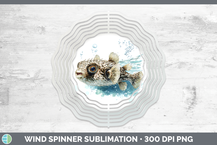 Porcupinefish Ocean Fish Sketch Wind Spinner Sublimation Des