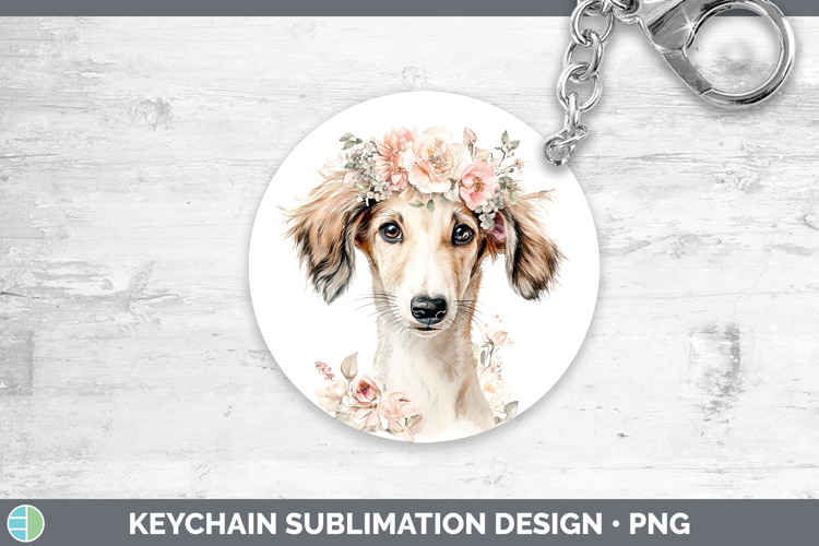 Saluki Dogs 05 Floral Crown Keychain Sublimation Design