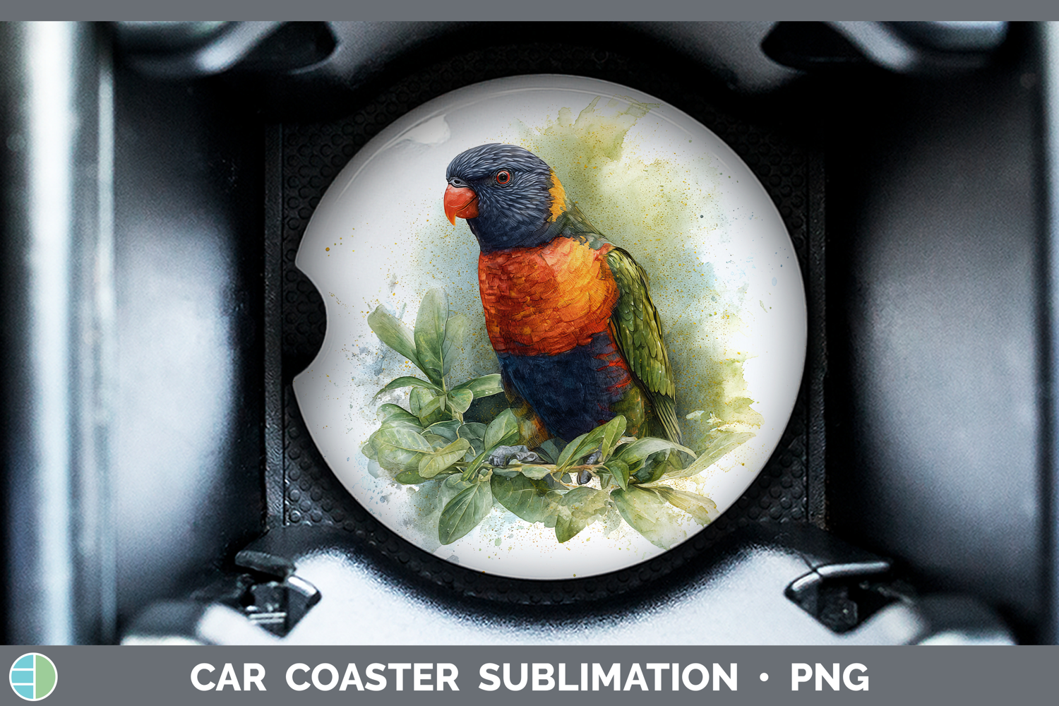 Lorikeet Parrot Botanicals Car Coaster Sublimation Design