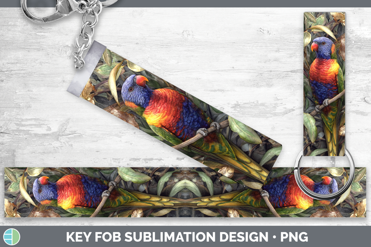Rainbow Lorikeet Parrot Botanicals Key Fob Sublimation Desig