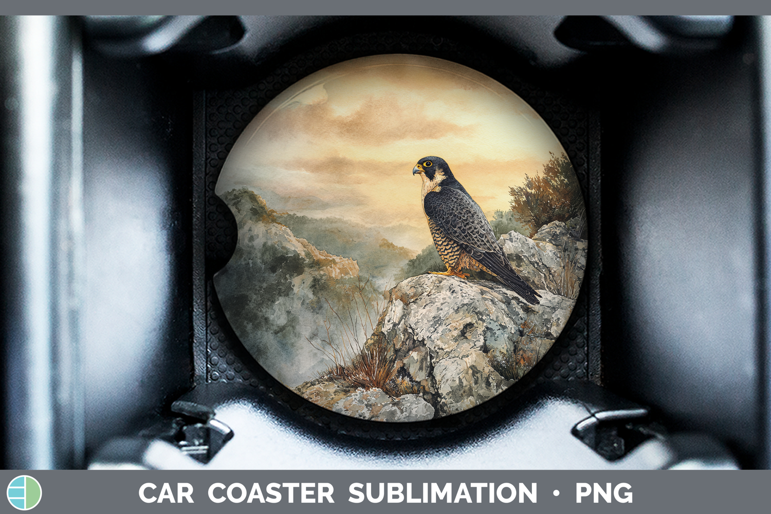 Peregrine Falcon Sunset Car Coaster Sublimation Design