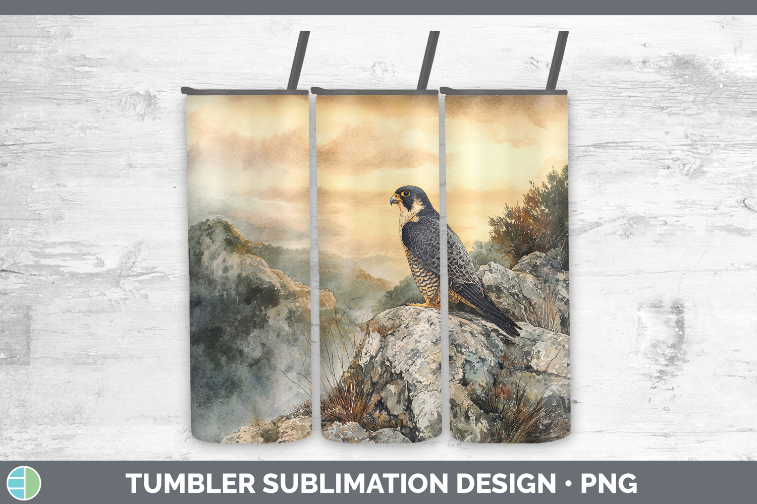 Peregrine Falcon Sunset Tumbler Sublimation Design