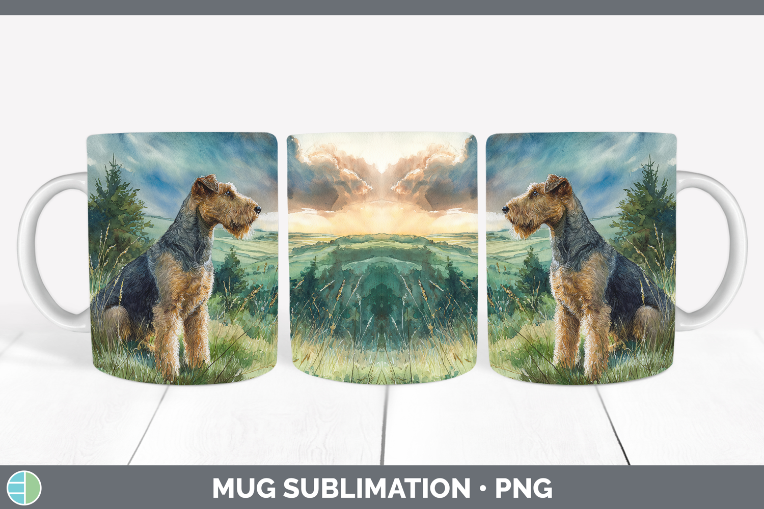 Airedale Terrier Dogs 04 Sunset Mug Wrap Sublimation Design