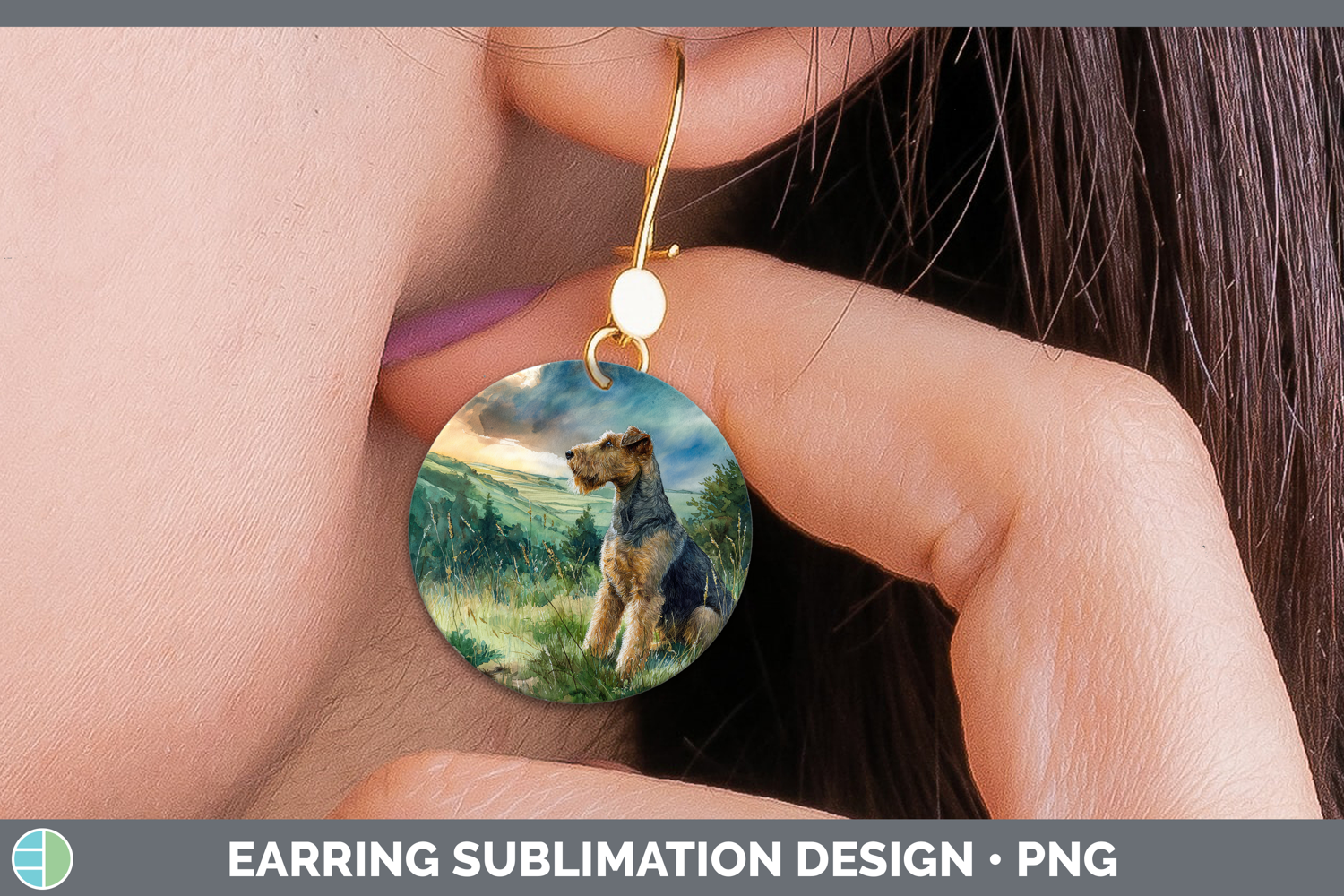 Airedale Terrier Dogs 04 Sunset Round Earrings Sublimation D