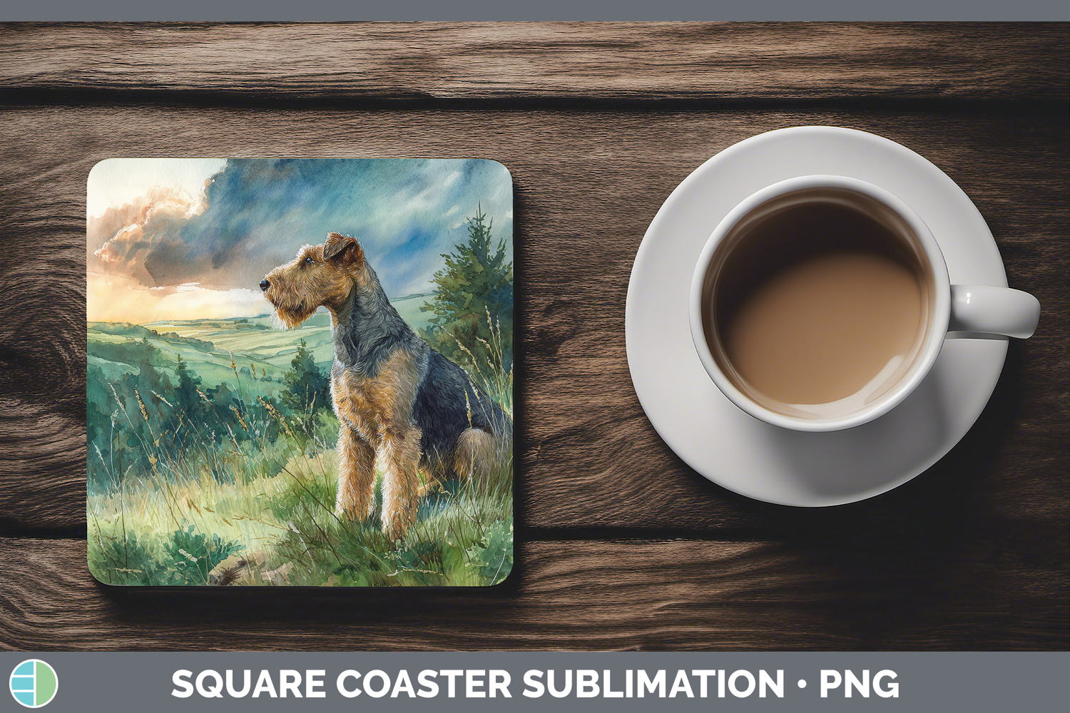 Airedale Terrier Dogs 04 Sunset Square Coaster Sublimation D