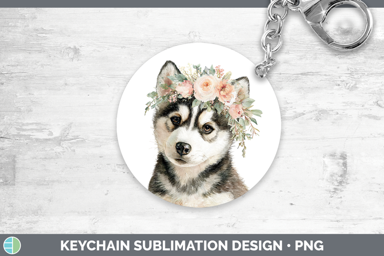 Siberian Husky Dogs 05 Floral Crown Keychain Sublimation Des