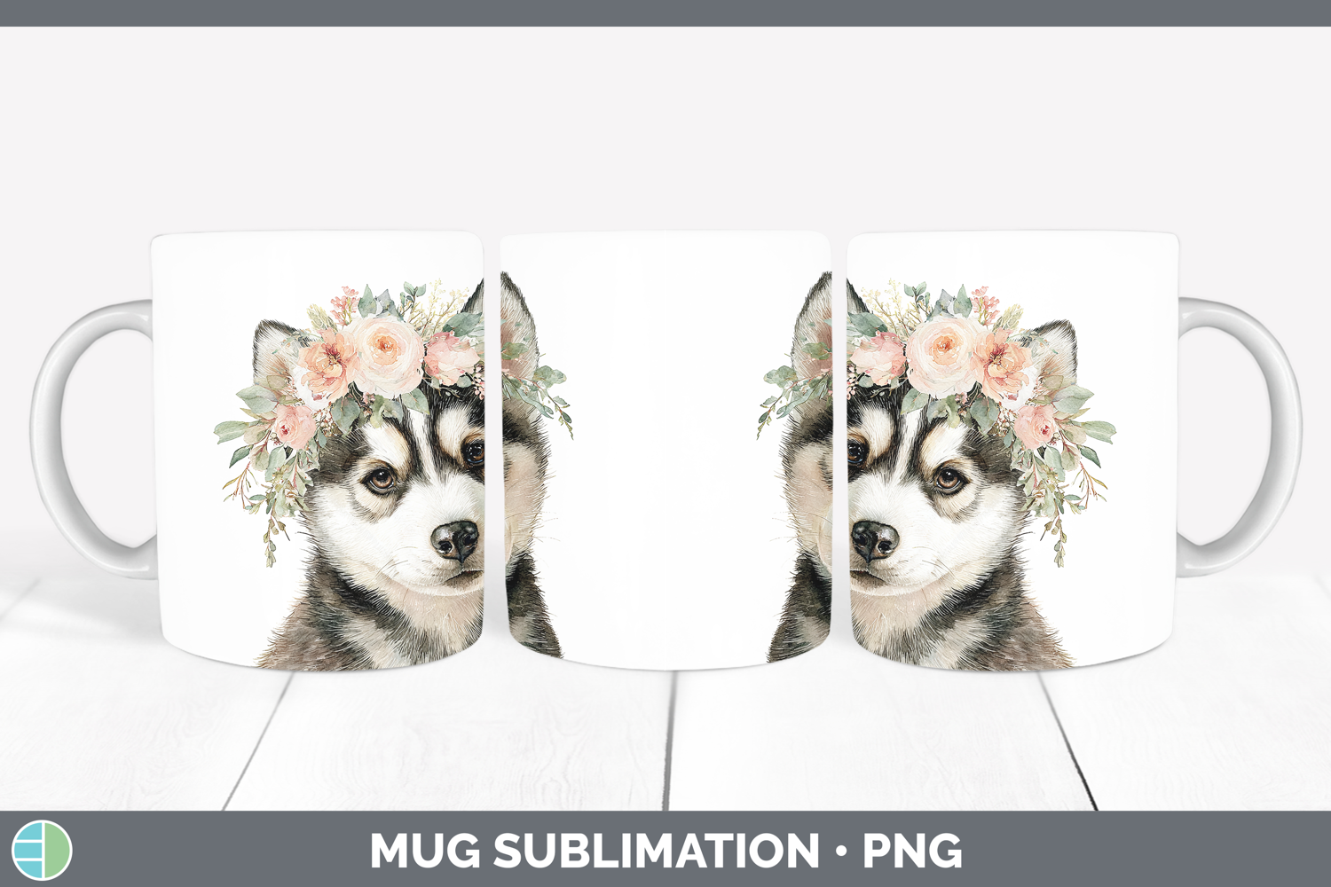Siberian Husky Dogs 05 Floral Crown Mug Wrap Sublimation Des