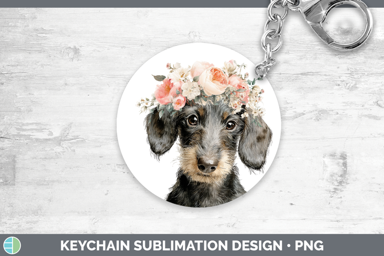 Wire Haired Dachshund Dogs 05 Floral Crown Keychain Sublimat