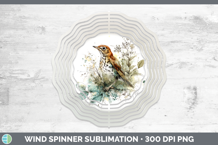Wood Thrush Birds 02 Sketch Wind Spinner Sublimation Design