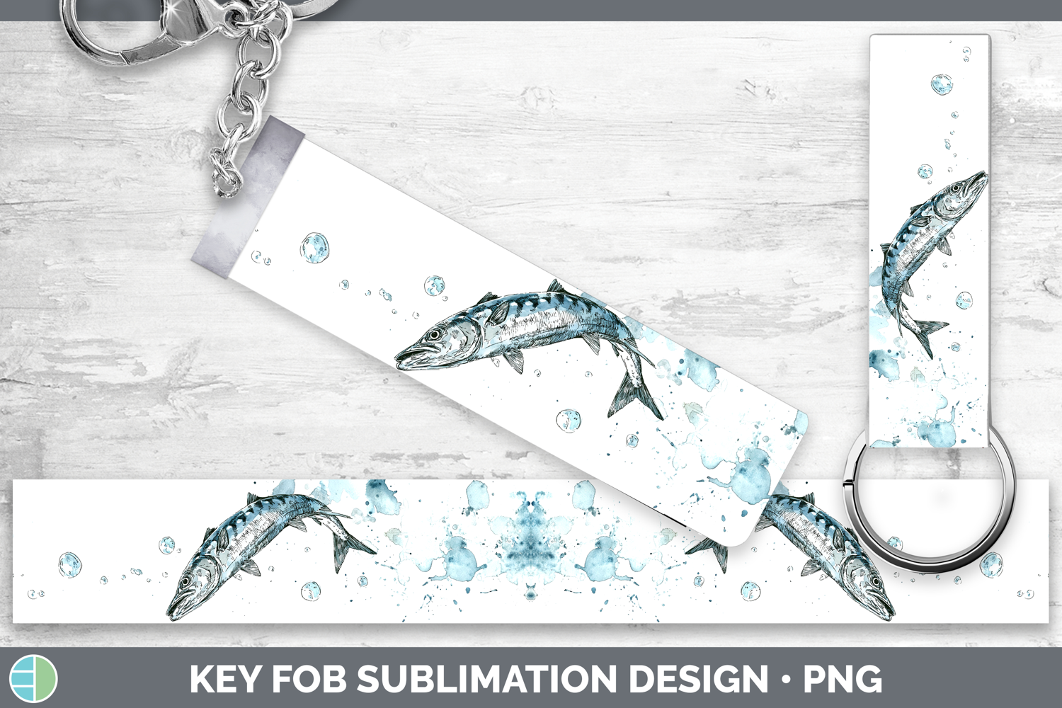 Barracuda Ocean Fish Sketch Key Fob Sublimation Design