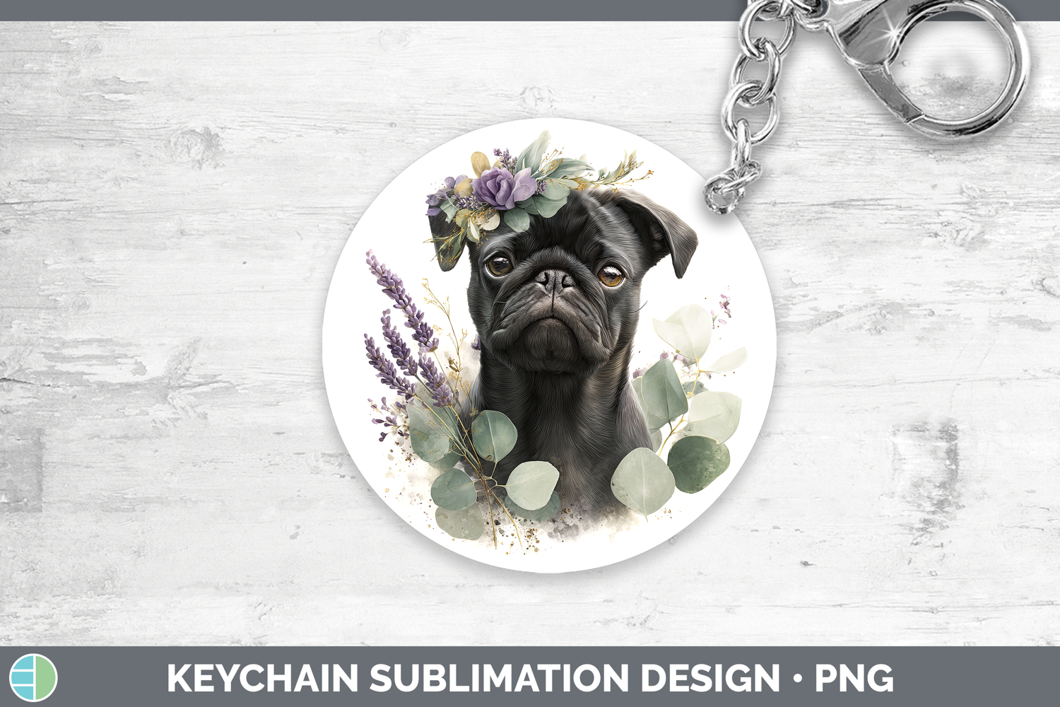 Black Pug Dogs 05 Lavender and Eucalyptus Keychain Sublimati