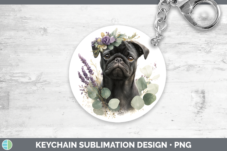 Similar Design Products to Black Pug Dogs 05 Lavender and Eucalyptus Keychain Sublimati
