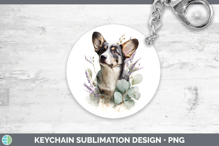 Cardigan Corgi Dogs 05 Lavender and Eucalyptus Keychain Subl