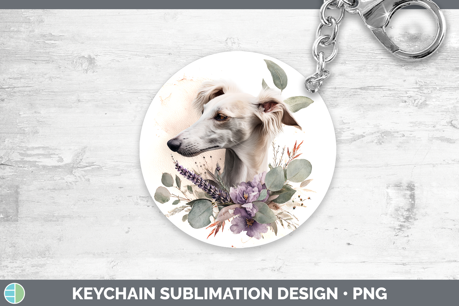 Saluki Dogs 05 Lavender and Eucalyptus Keychain Sublimation