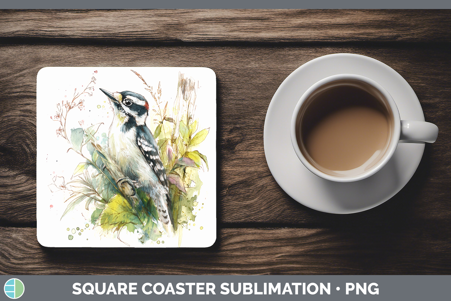Woodpecker Birds 01 Sketch Square Coaster Sublimation Design