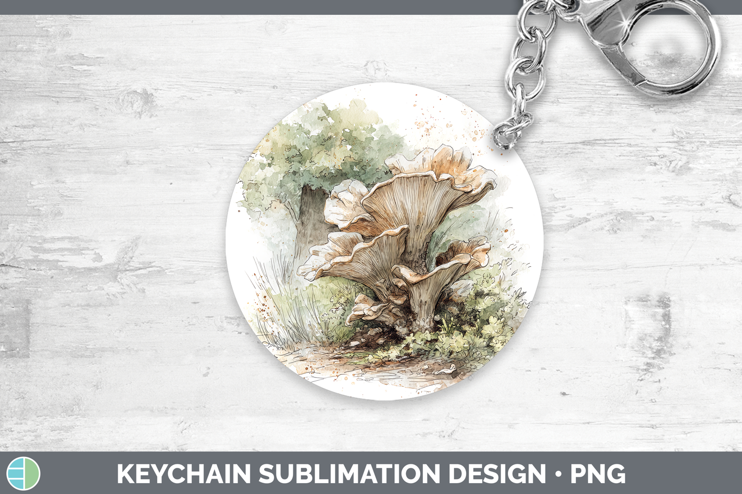 King Oyster Mushroom Sketch Keychain Sublimation Design