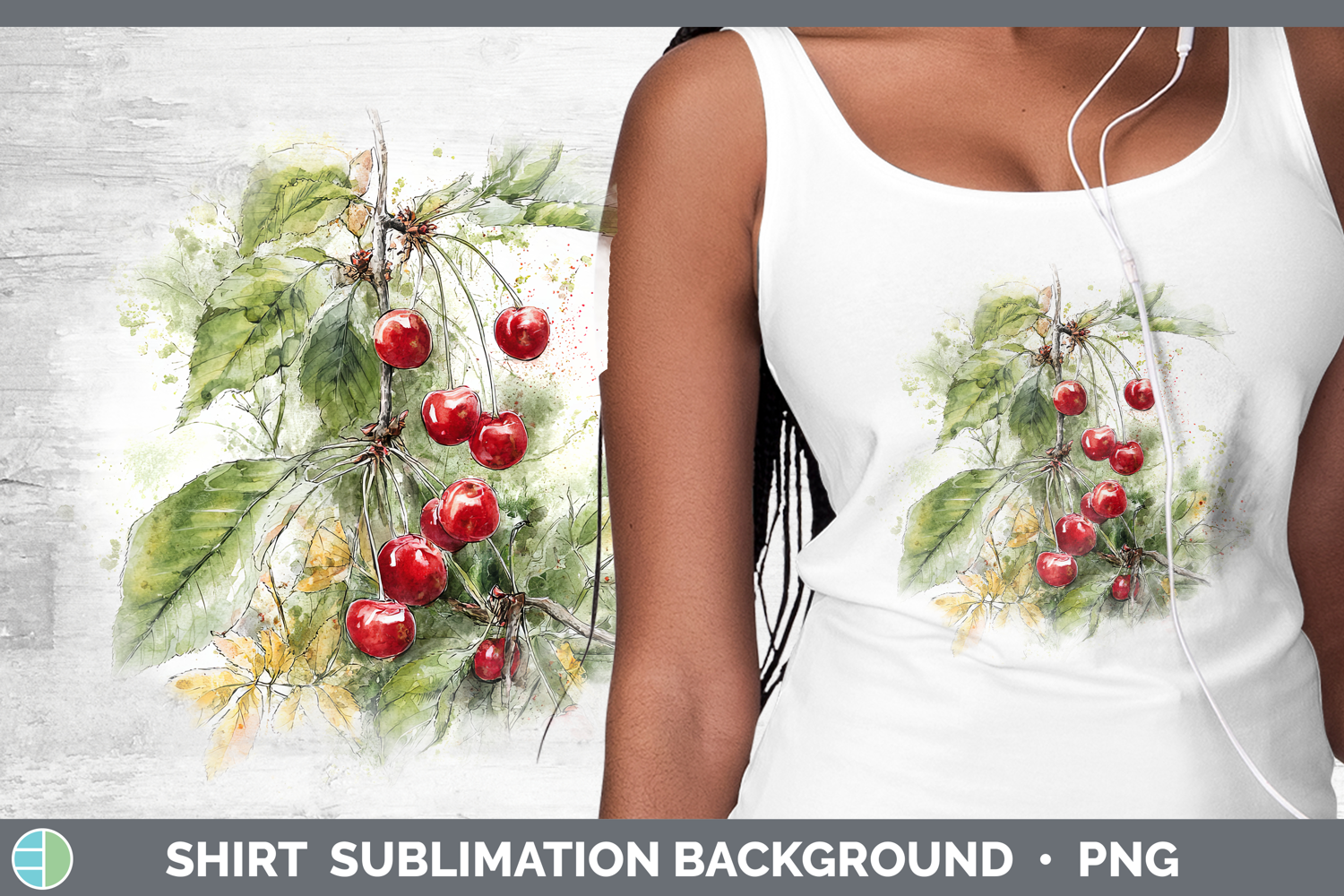 Cherry Fruit Sketch Shirt Sublimation Design