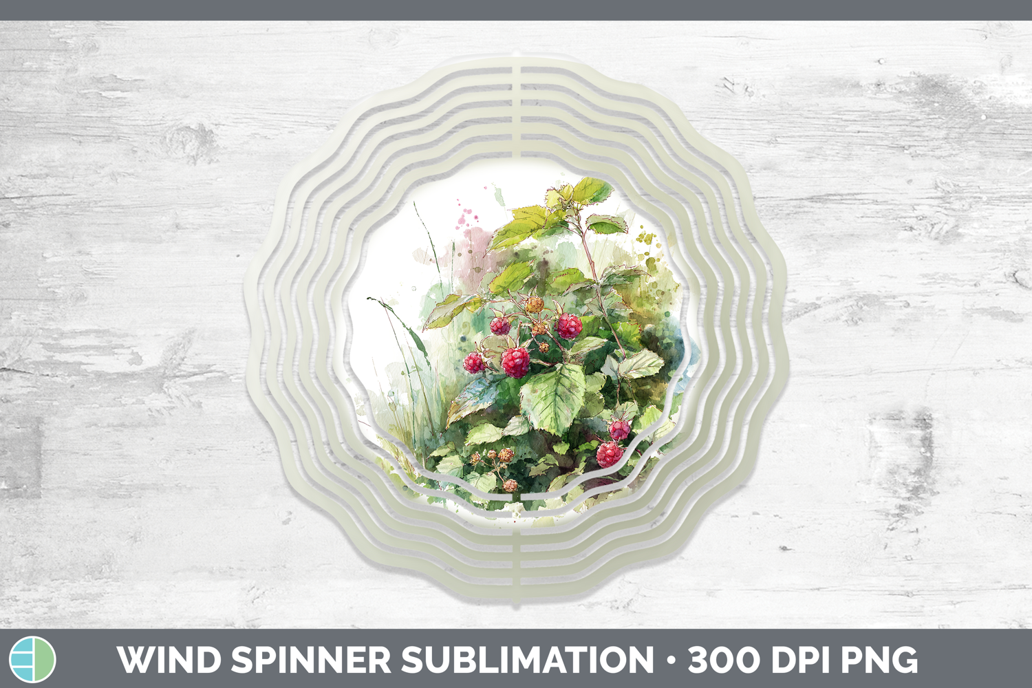 Raspberries Fruit Sketch Wind Spinner Sublimation Design