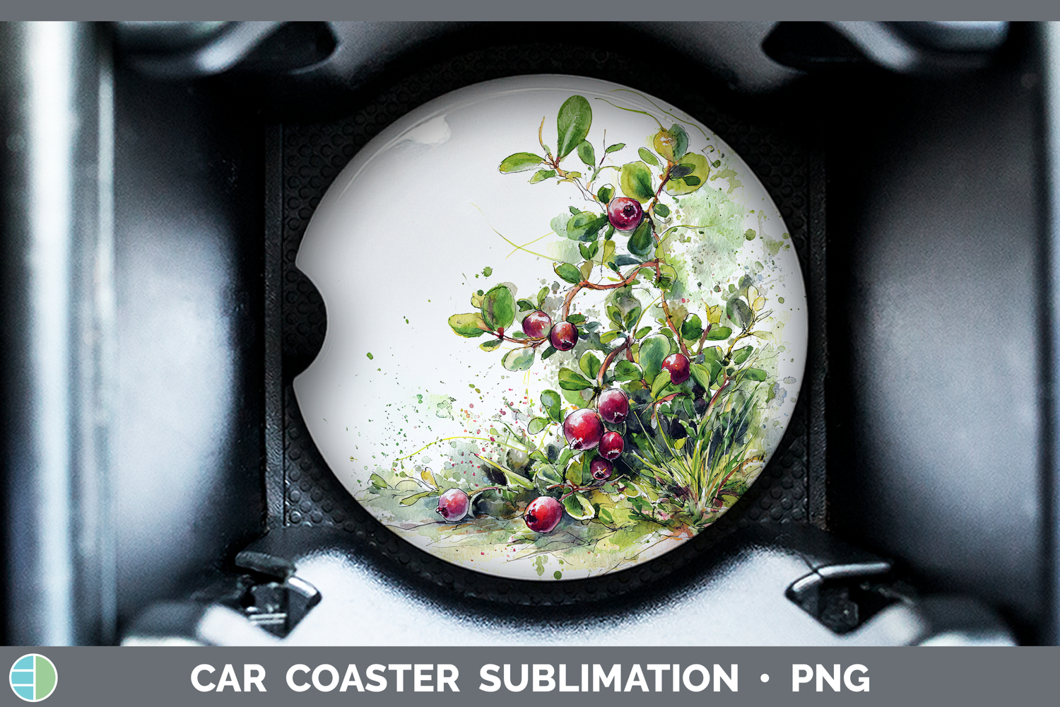 Cranberries Fruit Sketch Car Coaster Sublimation Design