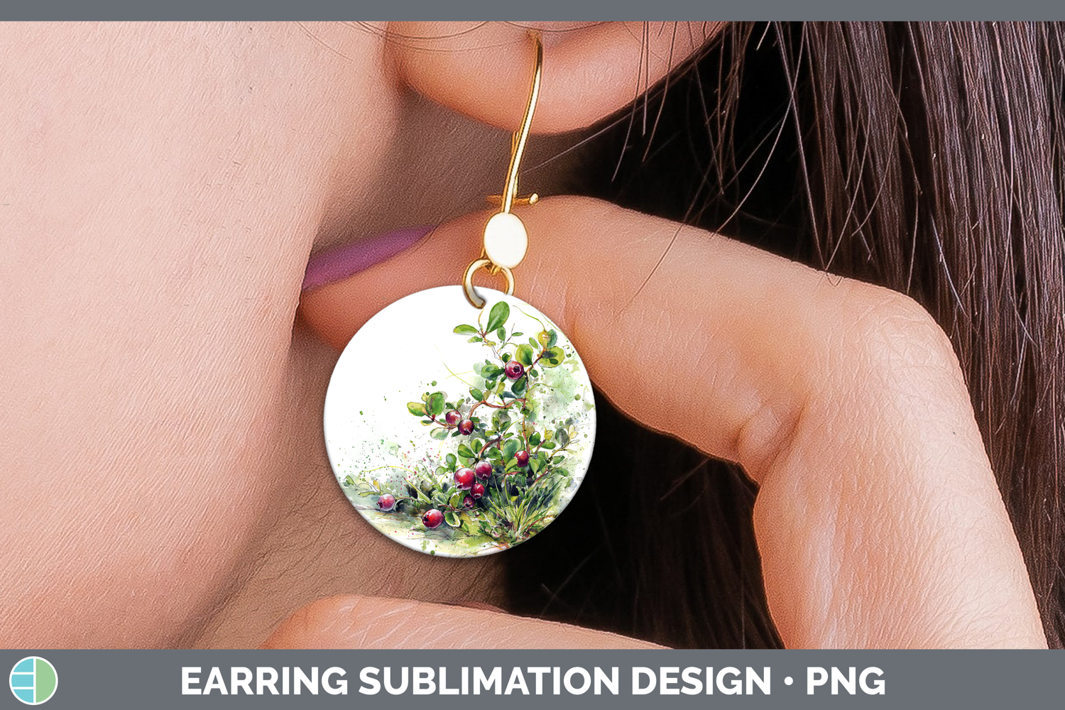 Cranberries Fruit Sketch Round Earrings Sublimation Design