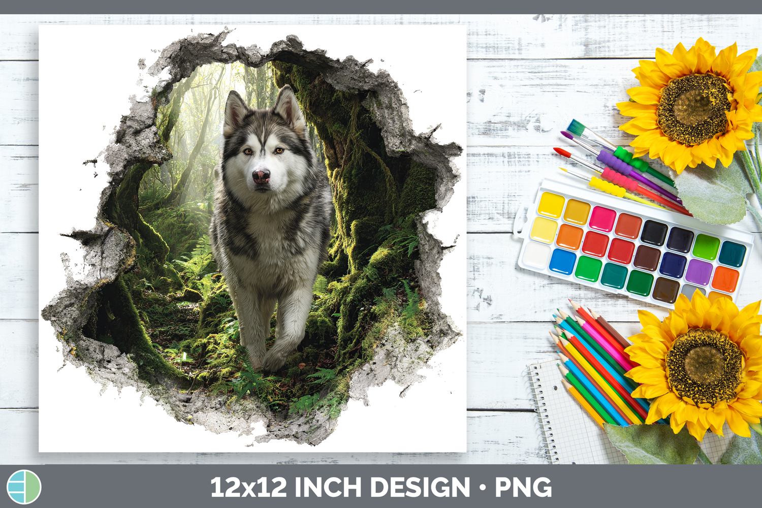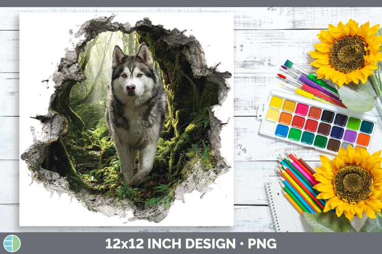 Alaskan Malamute Dogs 02 3D Hole Paper Backgrounds Design