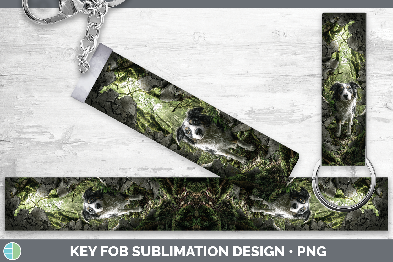 Border Collie Dogs 02 3D Hole Key Fob Sublimation Design