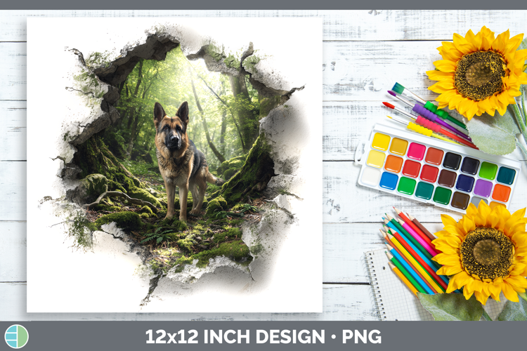 German Shepherd Dogs 02 3D Hole Paper Backgrounds Design