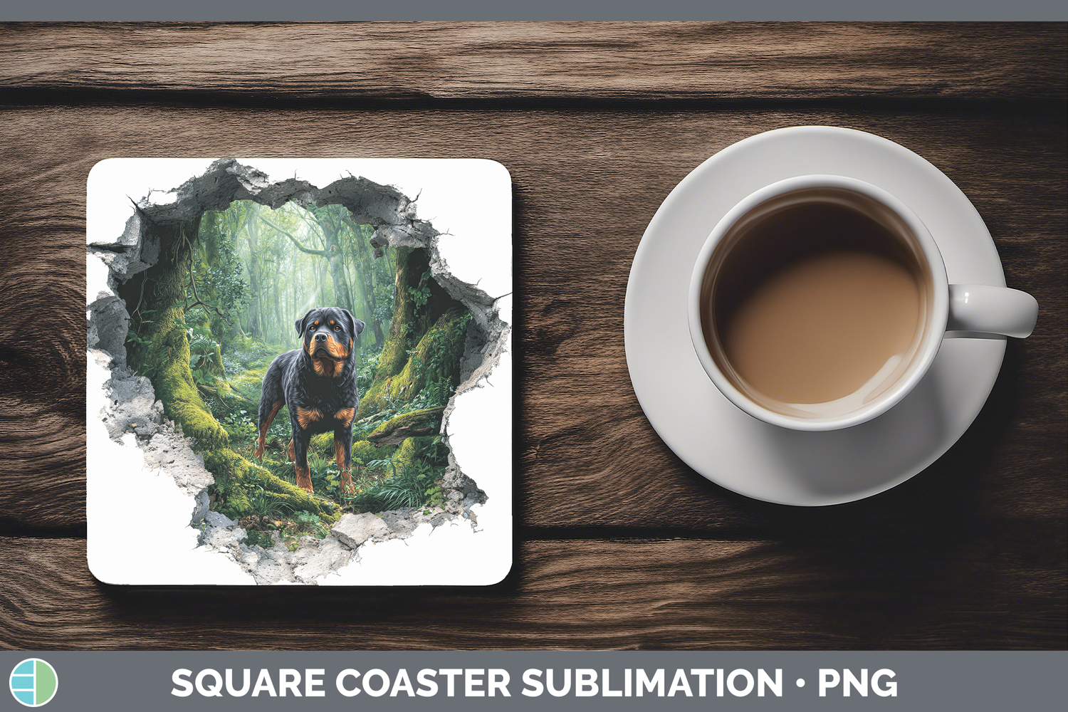 Rottweiler Dogs 02 3D Hole Square Coaster Sublimation Design