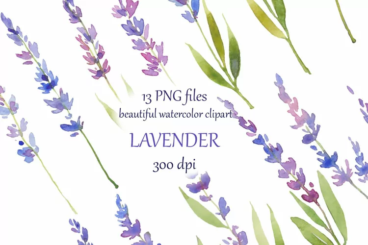 This digital download 1 ZIP with 13 PNG of  beautiful watercolor with floral lavender  , watercolor hand painted Lavender  Clipart