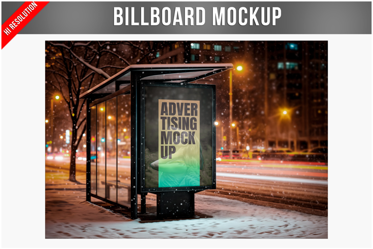 Elevate your design game with our Billboard Mockup in Snowstorm at Night on Urban Street, a versatile tool crafted to seamlessly integrate your stunning designs. The PSD file is designed for easy customization, featuring dedicated layers, precise masks, and smart objects.