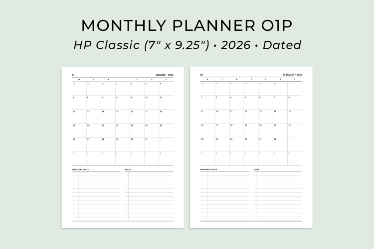 2026 Printable Dated Monthly Planner — HP Classic Edition
