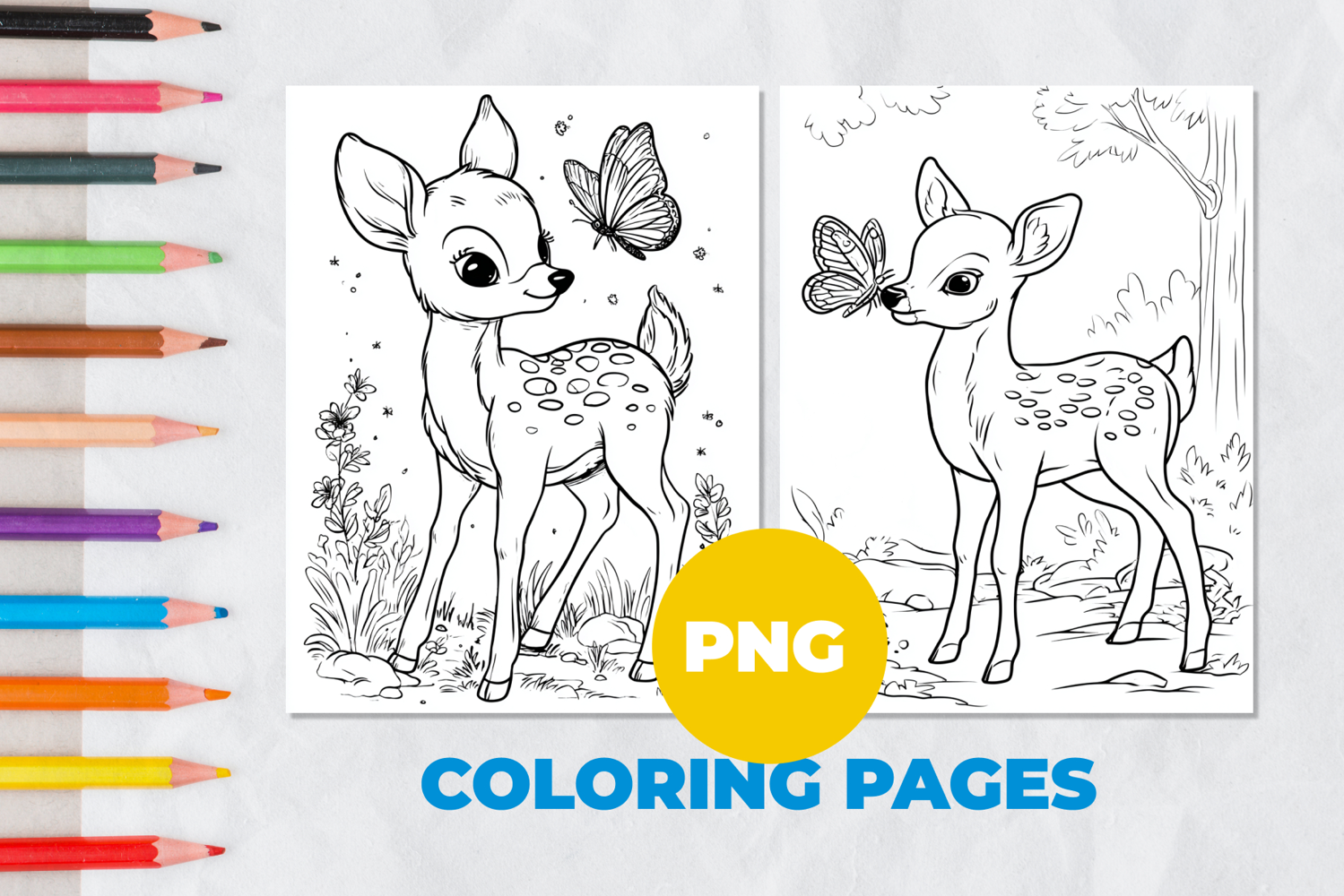 Deer with butterflies Coloring Pages | Coloring book example image 1