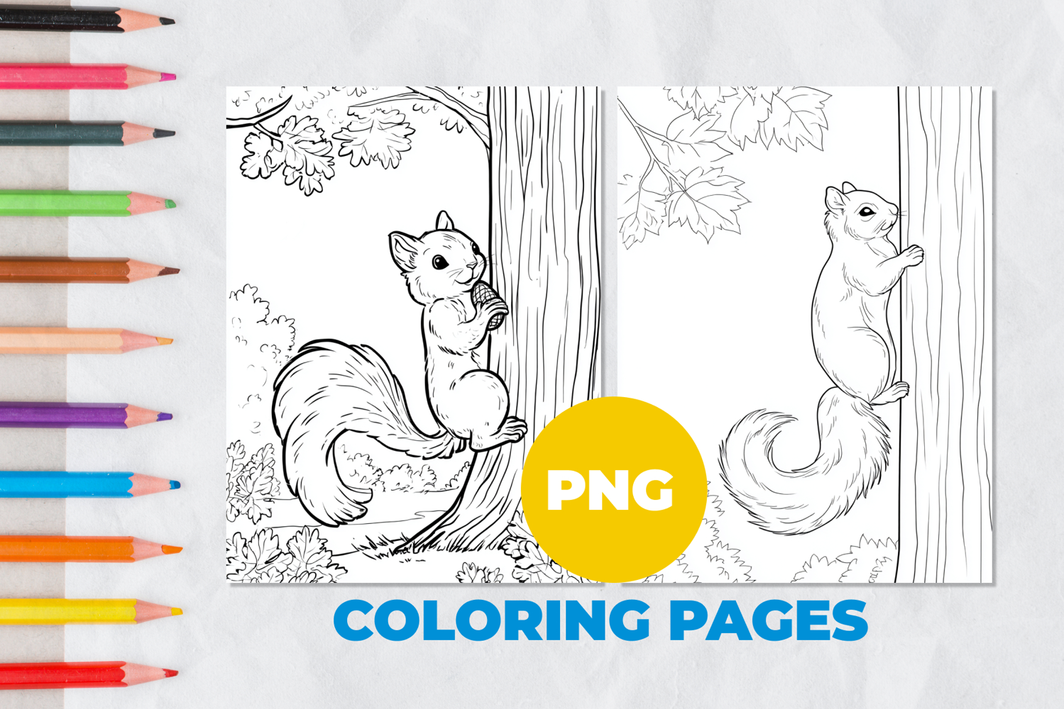 Squirrel on a tree Coloring Pages | Coloring book example image 1