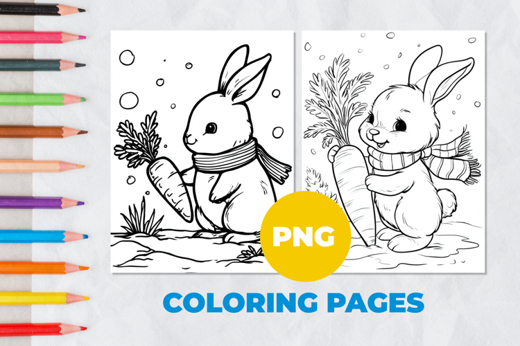 Rabbit with carrot Coloring Pages | Coloring book example image 1