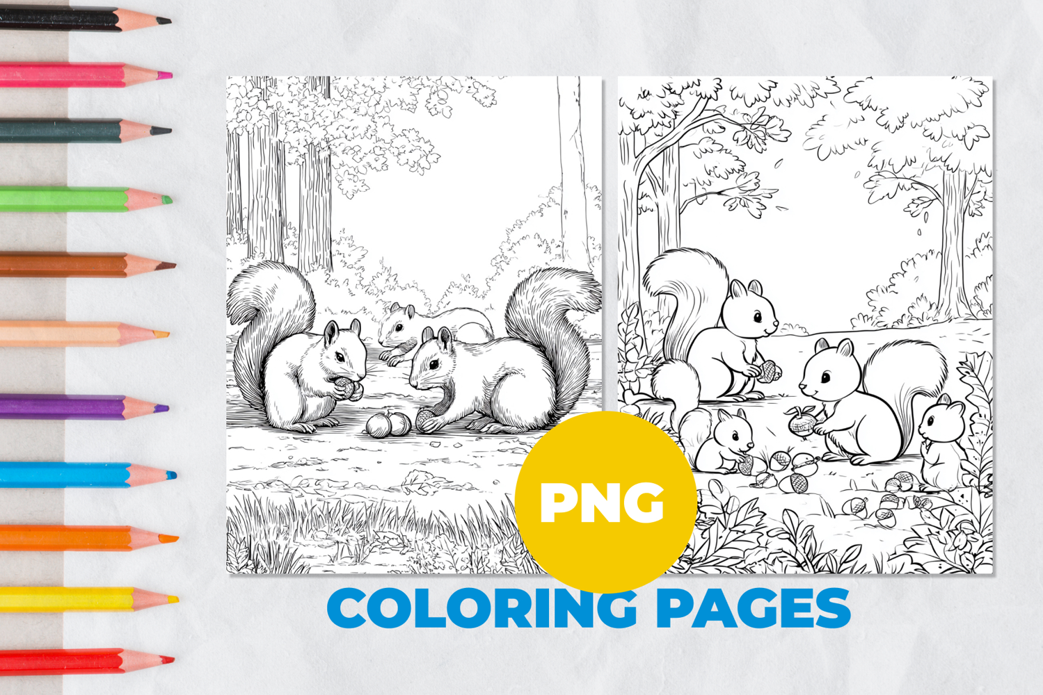 Squirrels in the forest Coloring Pages | Coloring book example image 1