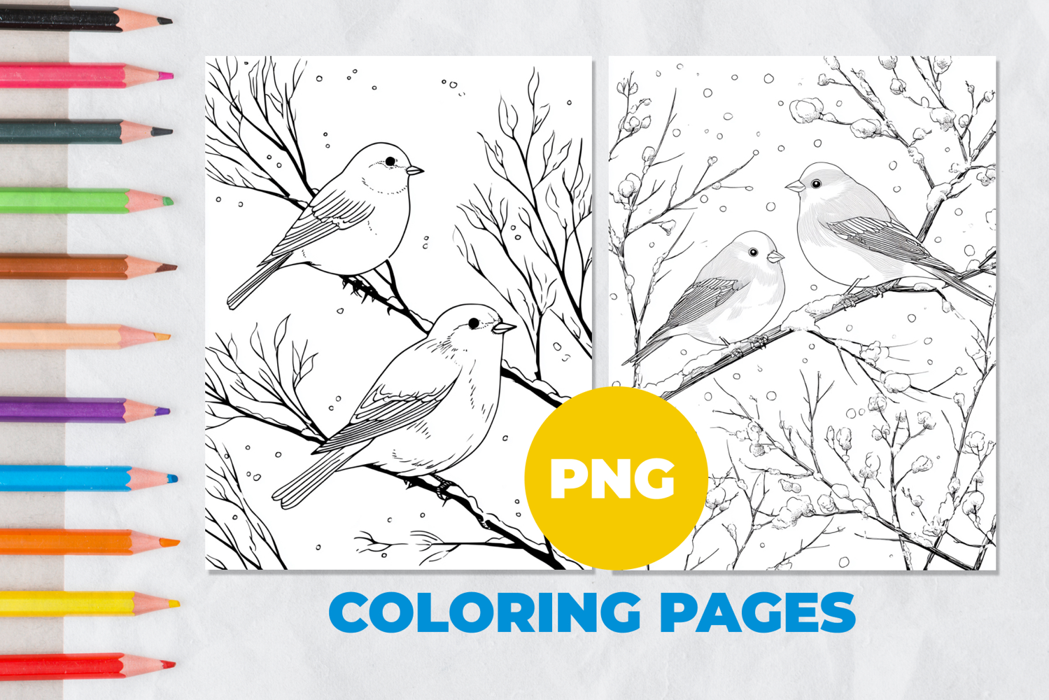 Birds on a branch Coloring Pages | Coloring book example image 1