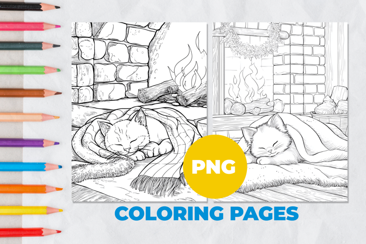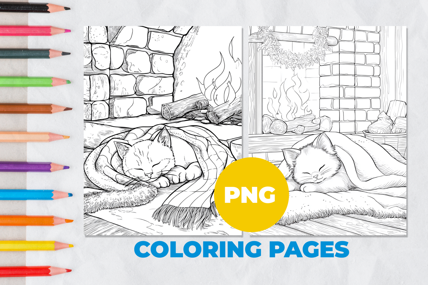 Similar Design Products to A cat near the fireplace Coloring Pages | Coloring book