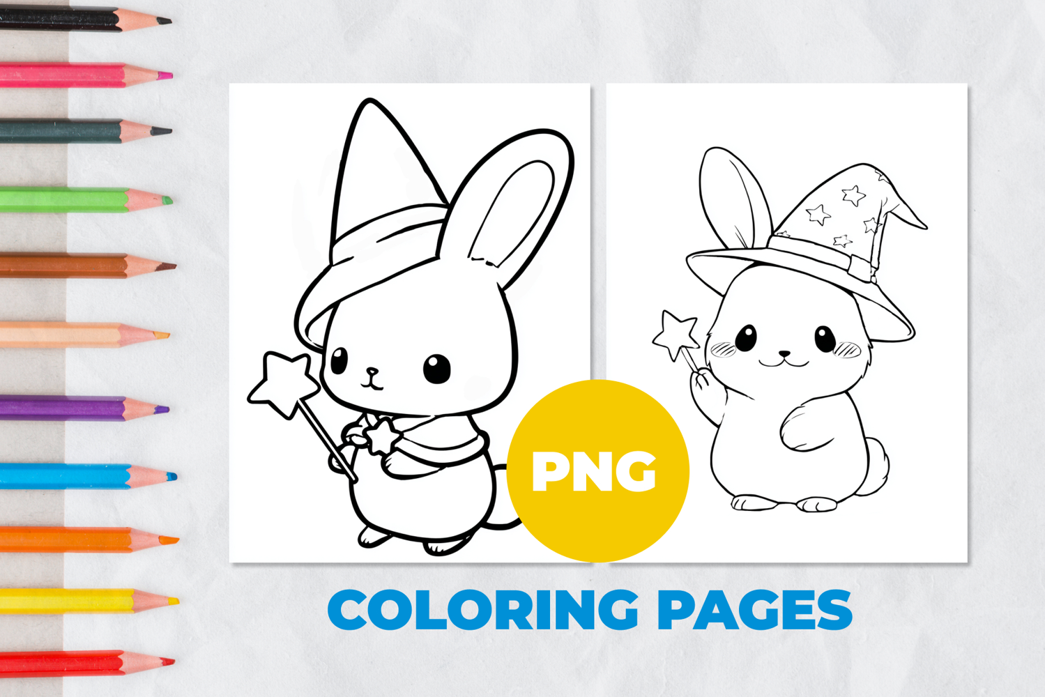 Children Animal Cute Bunny Rabbit Wizard Kawaii Coloring Book Coloring Page Coloring Pages