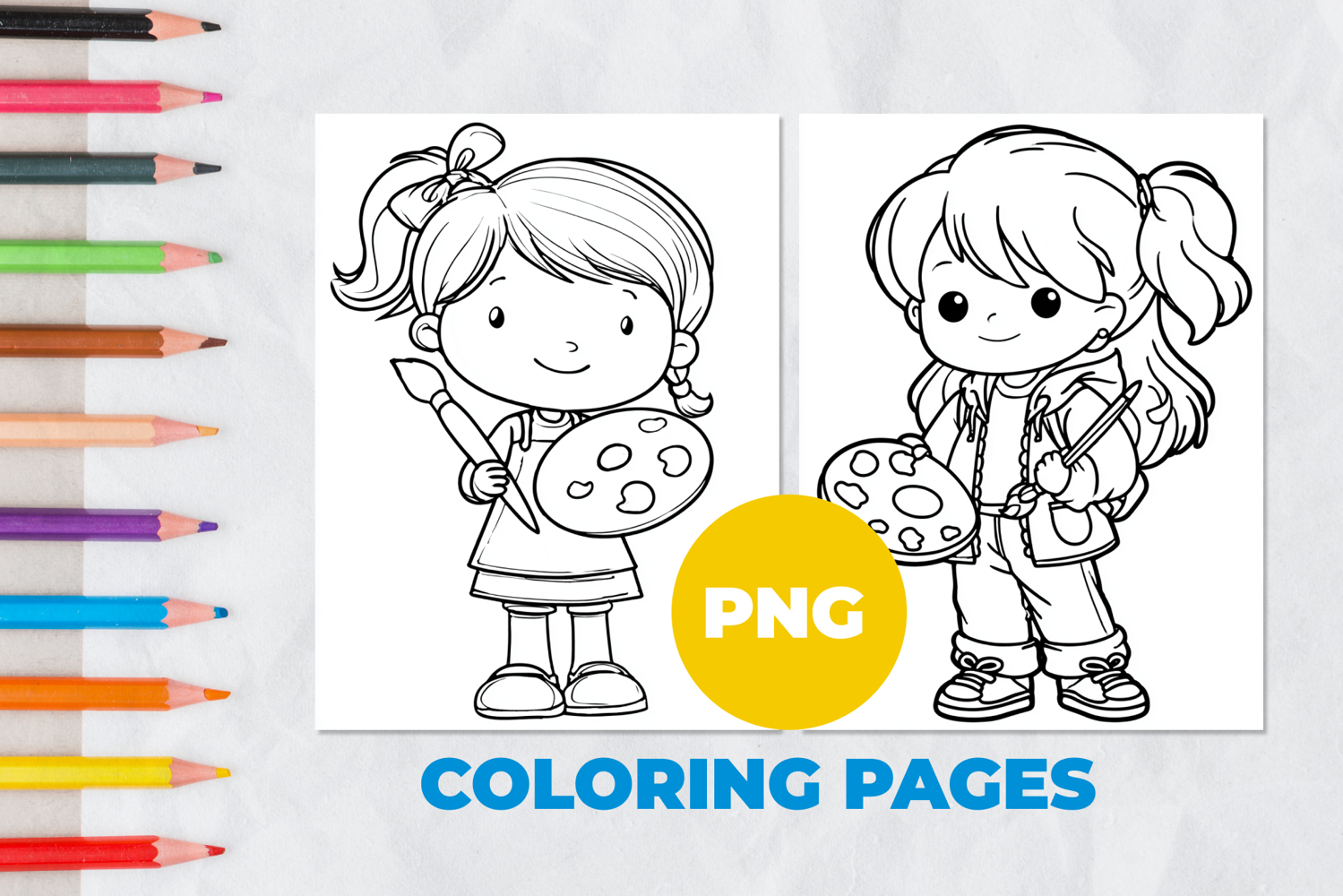 Children Cartoon Cute Job Profession Kawaii Coloring Book Artist Coloring Page Coloring Pages
