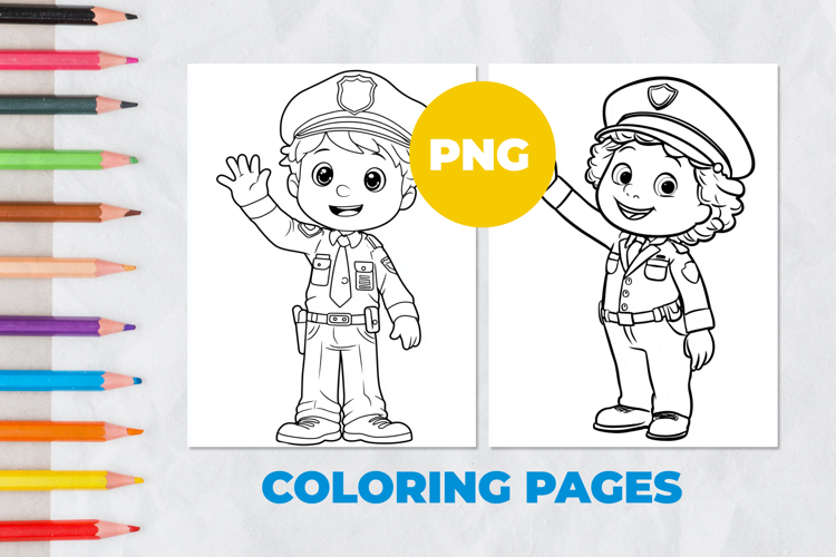 Children Cartoon Cute Job Profession Police Officer Kawaii Coloring Book Coloring Page Coloring Pages