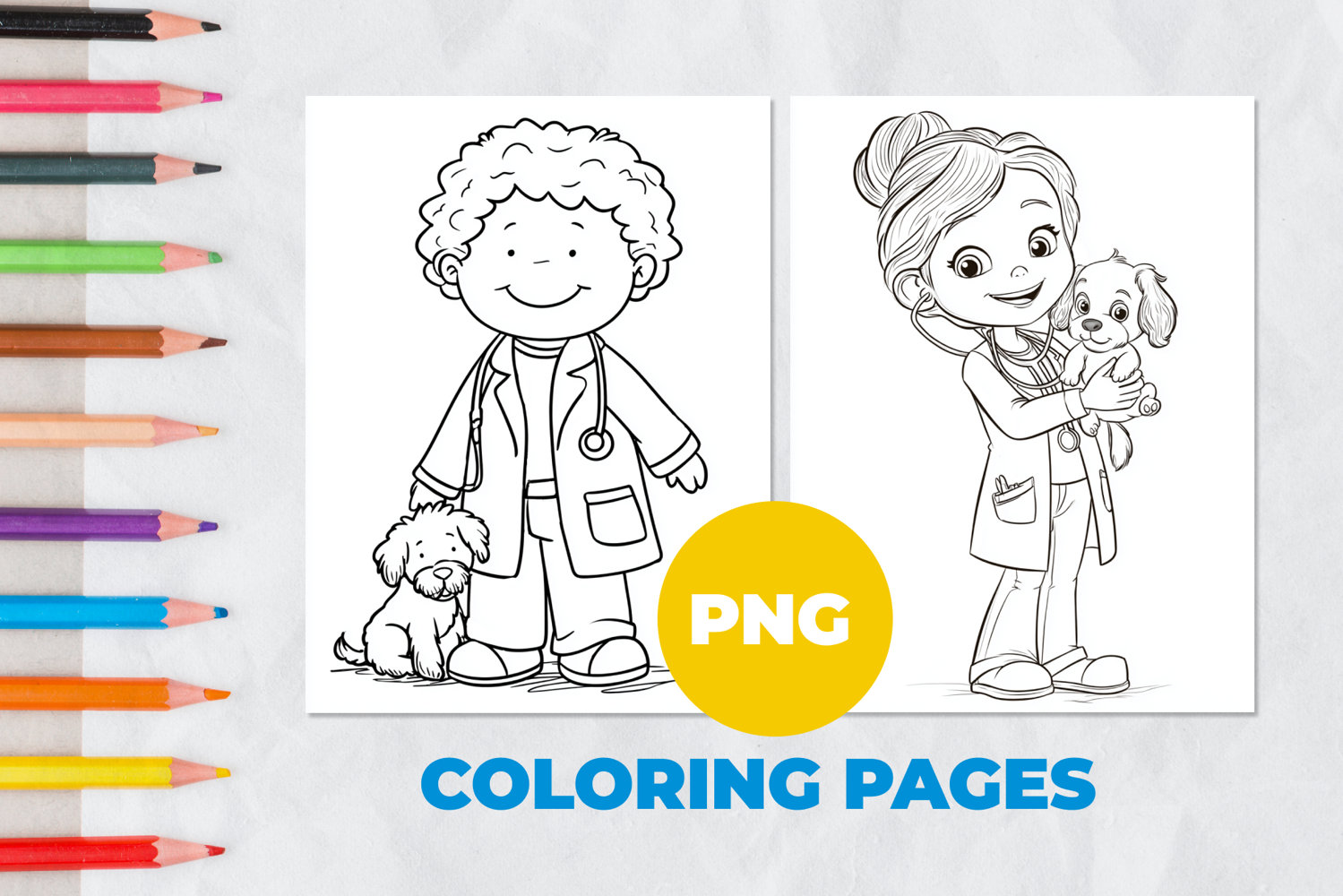 Children Cartoon Cute Job Profession Kawaii Coloring Book Coloring Page Coloring Pages Vet