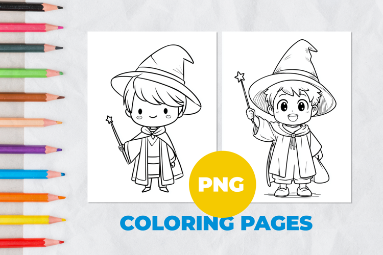 Children Cartoon Cute Boy Wizard Kawaii Coloring Book Coloring Page Coloring Pages